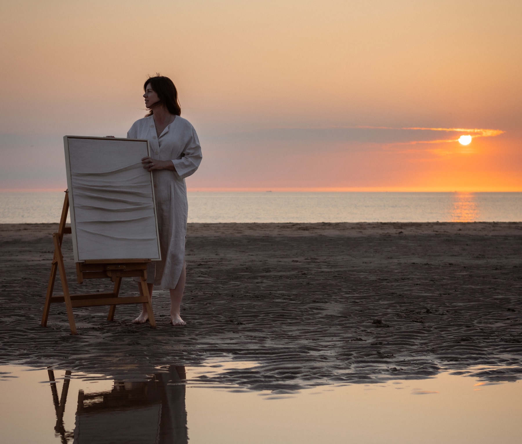 Net zoals de rimpelingen in het zand worden veroorzaakt door verschillende bewegingen van de zee, symboliseert mijn werk de diverse levenservaringen die we ondergaan. Sommige zijn krachtig en onverwacht, terwijl andere geleidelijk en zacht zijn.
